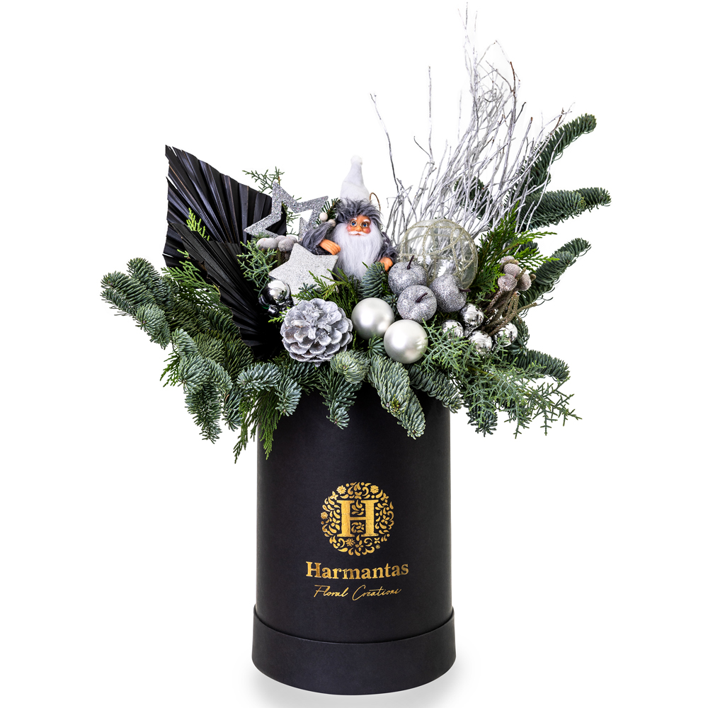 Γιορτινό μαύρο κουτί με ασημί-μαύρη σύνθεση