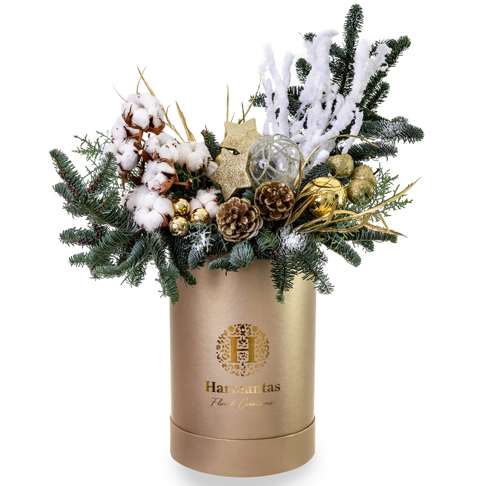 Γιορτινό χρυσό κουτί με λευκές-χρυσές αποχρώσεις στη σύνθεση