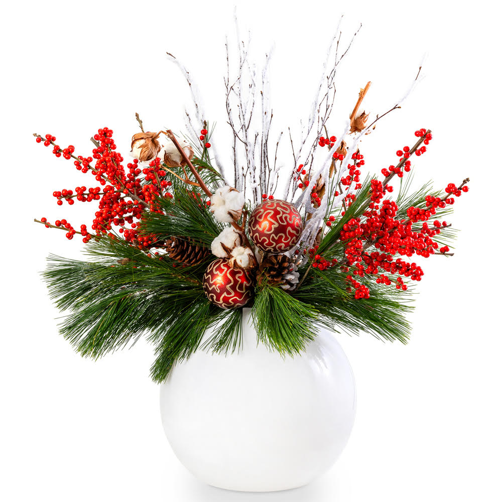 Λευκό γυάλινο βάζο με χριστουγεννιάτικη σύνθεση