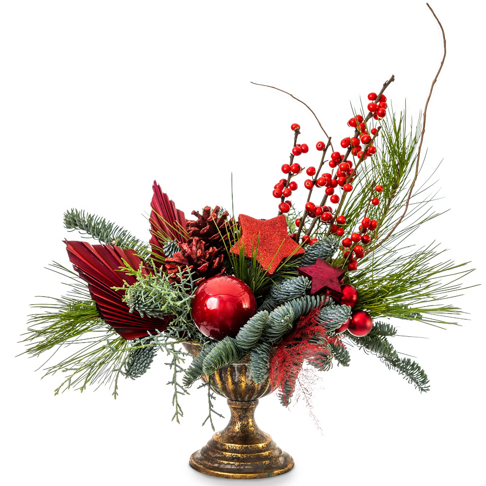 Χρυσή φοντανιέρα με χριστουγεννιάτικη σύνθεση