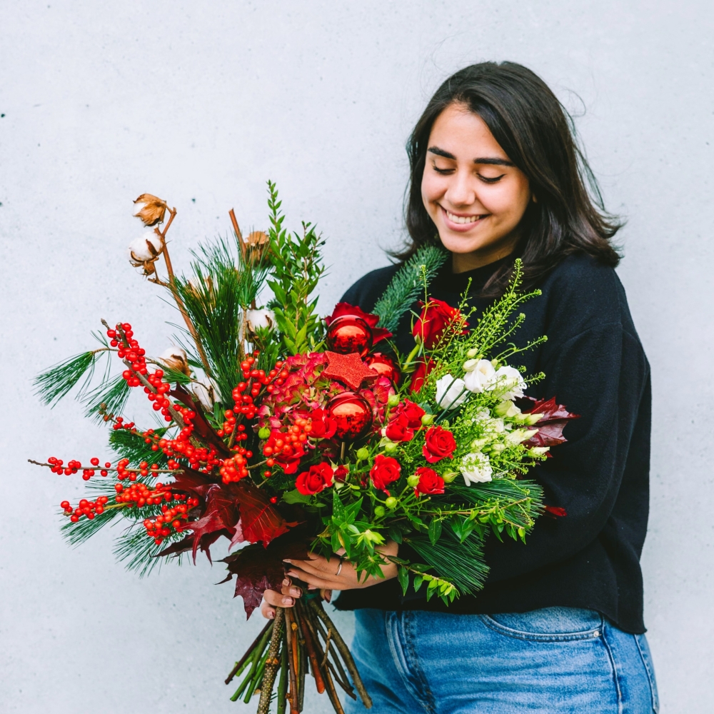 Ένα μοναδικό premium μπουκέτο σε κόκκινες αποχρώσεις των χρισουγέννων.