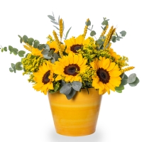 Bring the warmth and charm of autumn into your space with this stunning arrangement in an orange pumpkin vase.